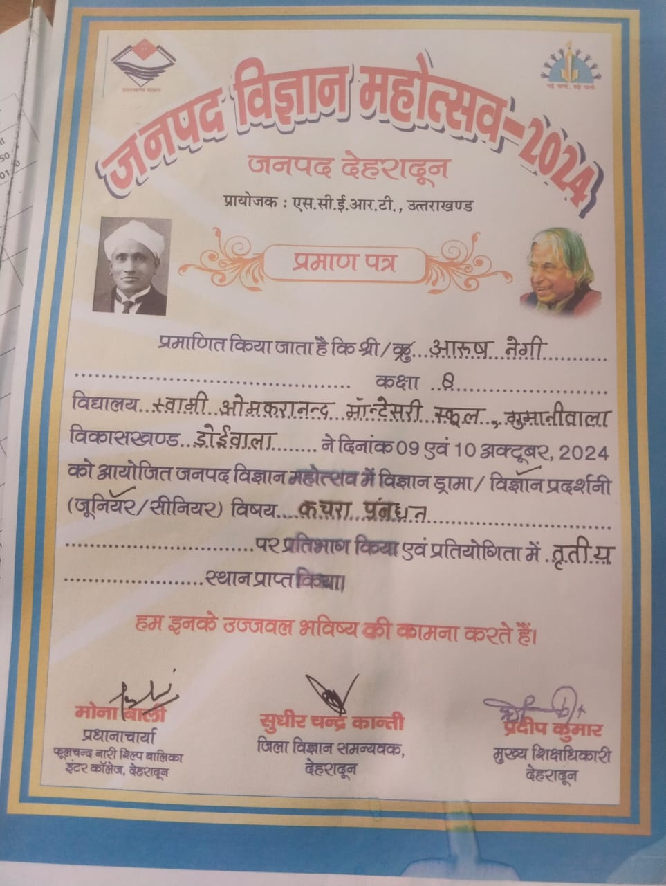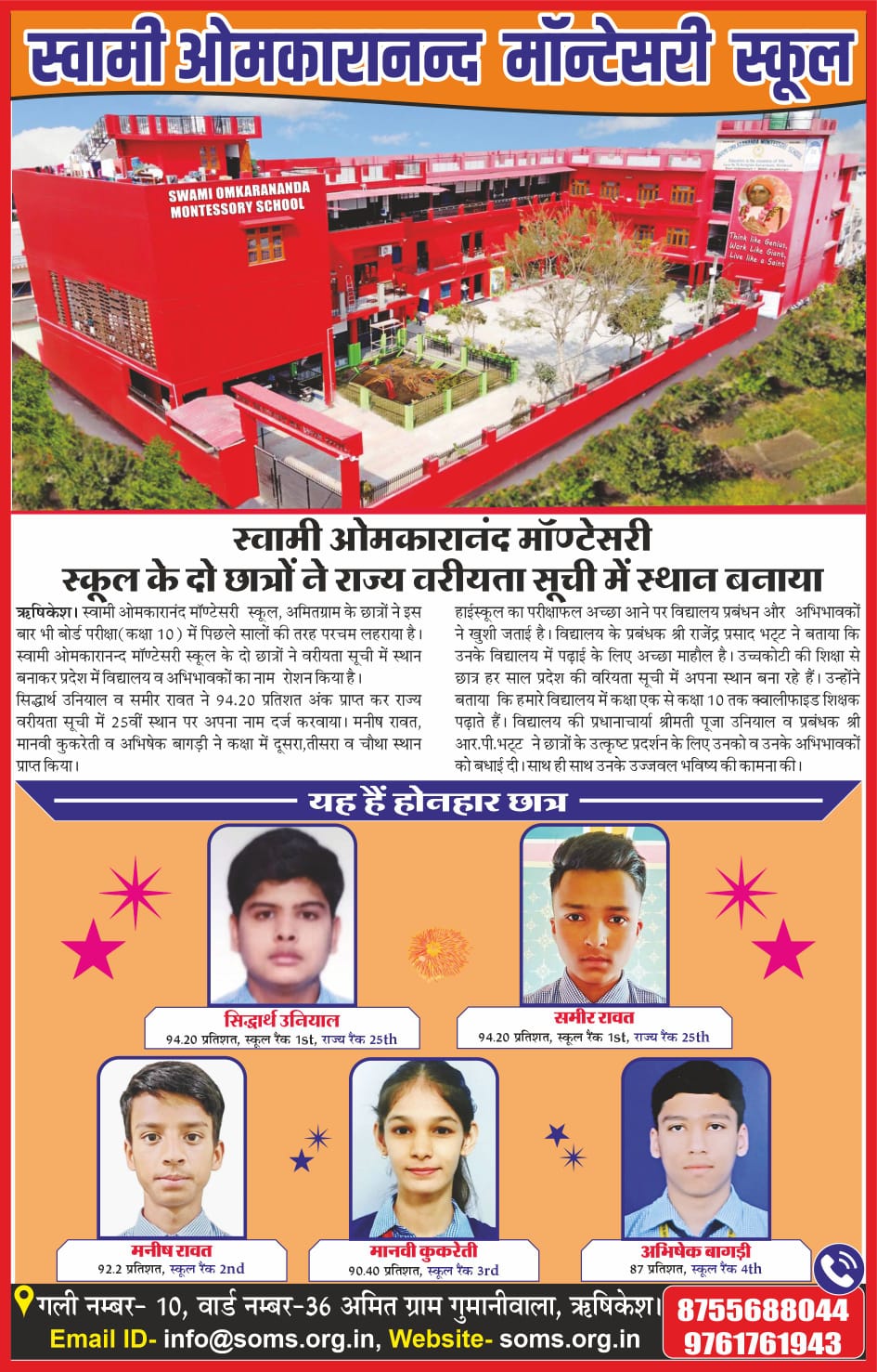 Two students of Swami Omkarananda Montessori School secured a place in the state merit list.